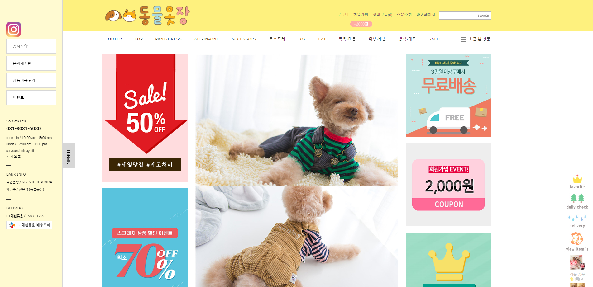 4. 왼쪽 메뉴바에 내용 추가(배송정보, 인스타그램)