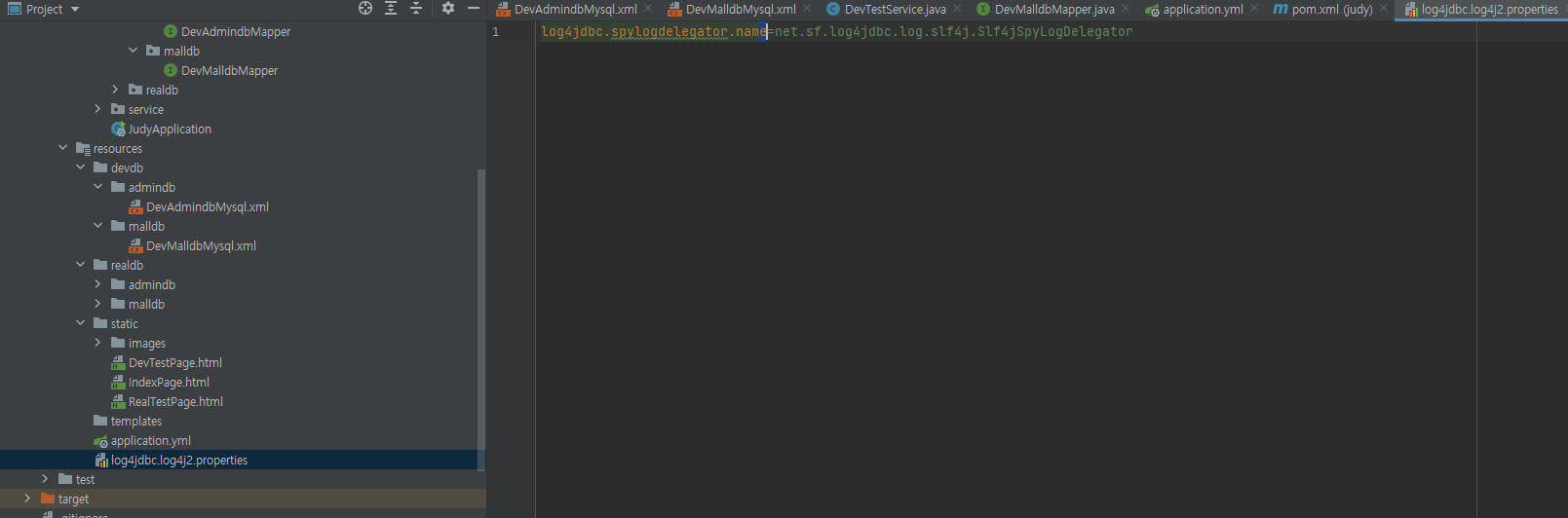 resource폴더 안에 log4jdbc.log4j2.properties를 만들고 다음과 같이 작성한다.