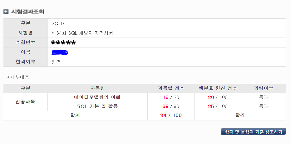 SQLD자격증은 온라인으로 조회하고 출력만 가능!
