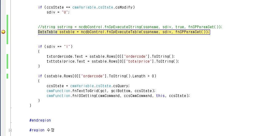 그럼 프로그램이 실행되고 중단점에 도달하면 해당 줄이 노란색으로 변한다.